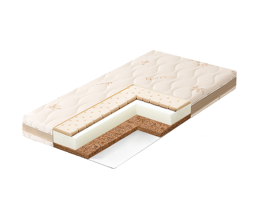 Жесткий и прочный наполнитель из переплетенных волокон кокосового ореха, скрепленных латексом – вспененным соком каучукового дерева. На 100% натуральный материал, экологически чистый и долговечный, один из лучших, которые может предложить нам природа. Обладает исключительными антиаллергическими и антибактериальными свойствами: не впитывает запахи и влагу, не гниет, отлично пропускает воздух и регулирует температуру, к тому же не деформируется. А самое главное – идеально поддерживает позвоночник маленького ребенка во время сна. По мнению ортопедов и педиатров, идеальный наполнитель матрасов для новорожденных.